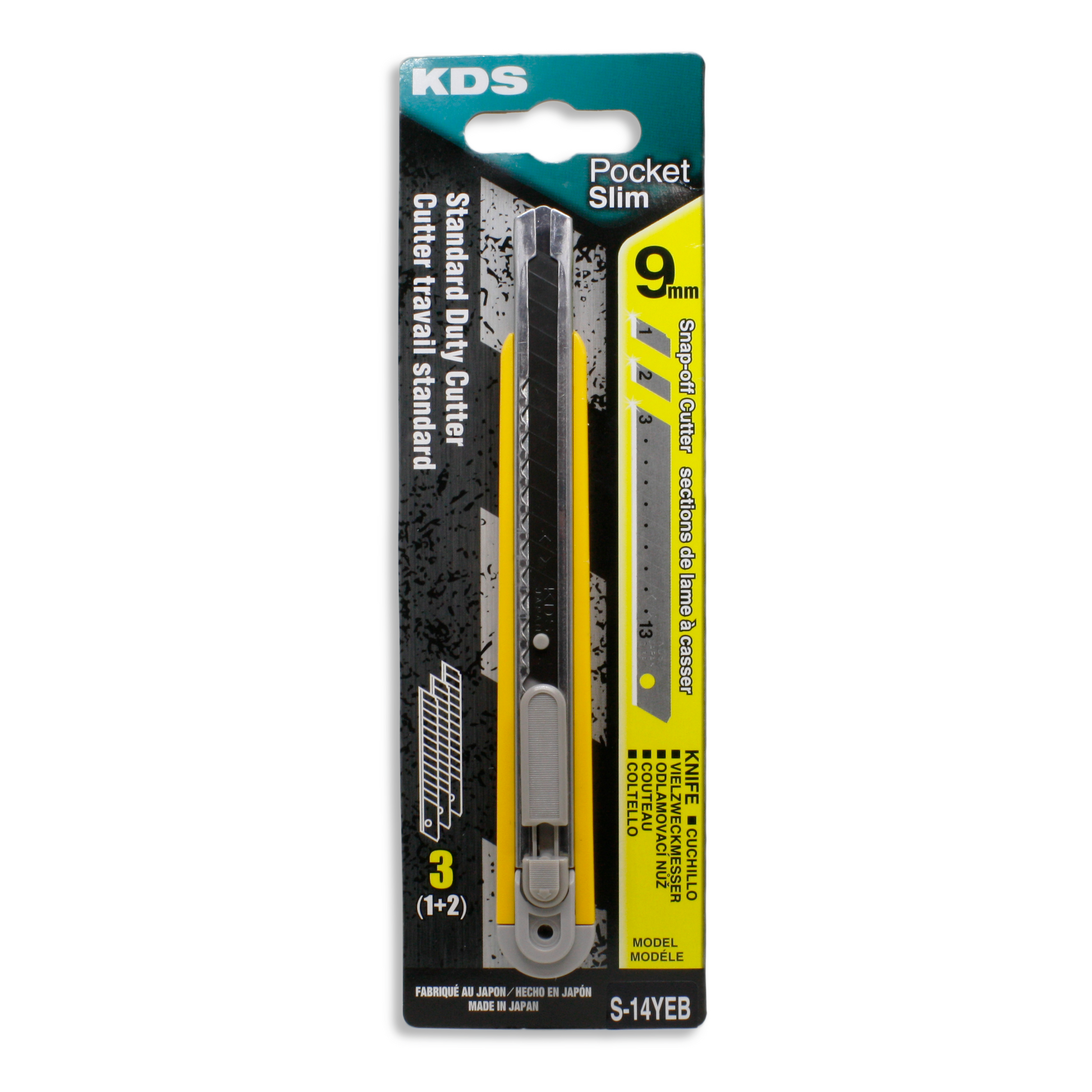 The KDS Pocket Slim Knife is equipped with 9mm Power Black Evolution Snap-Off Blades. Crafted in Japan, these durable, heat-toughened blades maintain their sharpness even with heavy use. At just 0.38mm thick, they offer a robust yet highly flexible cutting performance, ideal for tasks where precision is key such as wallpapering or crafts